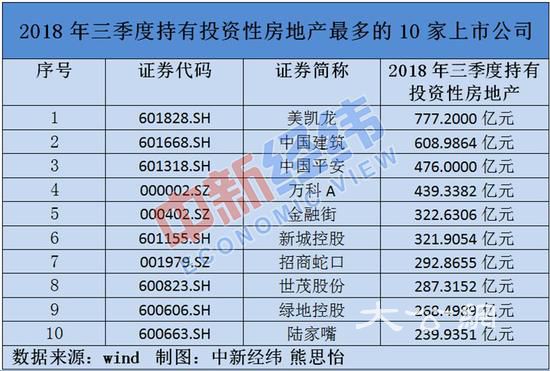 中新经纬客户端梳理发现,2018年三季度,A股共有1696家上市公司持有投资性房地产,占两市3565家公司的47.57%,合计持有投资性房地产10986.39亿元。其中,投资房地产超过100亿元的上市公司已有22家。