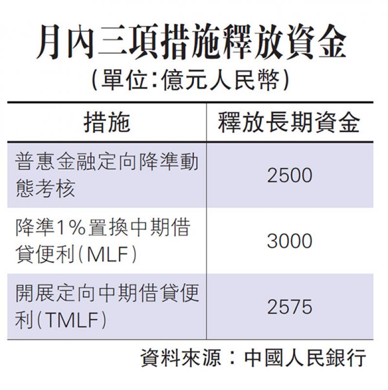中国央行宣布,昨日开展了2018年度普惠金融定向降准动态考核,此次动态考核净释放长期资金约2500亿元,加上1月4日宣布的降准及日前开展的中期借贷便利(TMLF)操作,上述三项措施共释放长期资金约8000亿元(人民币,下同)(见附表)。分析认为,中国多管齐下加强对实体经济的资金投放,除保障资金面,更引导中国经济从“高速度”向“高质量”转变。