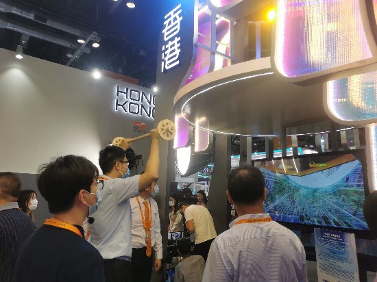 “香港馆”吸引众多观众,是服贸会最“吸睛”场馆之一;记者张帅摄