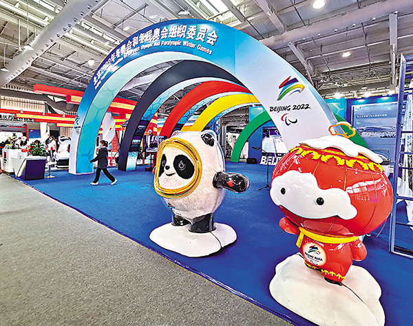 服贸会体育服务专题展内的北京冬奥会展台。 香港文汇报记者马晓芳 摄