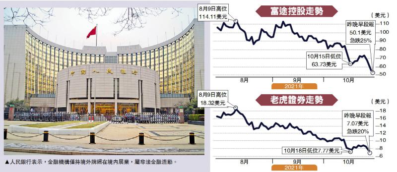 跨境互联网券商整改风波不断。人民银行金融稳定局局长孙天琦近日公开表示,金融机构仅持境外牌照在境内展业,属非法金融活动。受此冲击,富途控股(FUTU.US)、老虎证券母公司向上融科(TIGR.US)盘前股价大跌,美股开市后跌势持续,富途曾跌25%报50.1美元;向上融科跌20%报7.07美元。富途控股创始人李华回应,公司财政稳健、现金充沛,不存在倒闭的问题,亦不会影响到用户资金安全。向上融科则表示,未来将积极和监管机构保持沟通,坚守合规底线,服从各级监管要求。