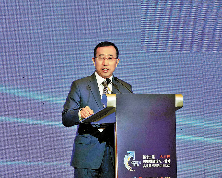 卢敏放(图中)等嘉宾围绕“高质量发展内生动力”主题进行对话。香港文汇报记者帅诚 摄