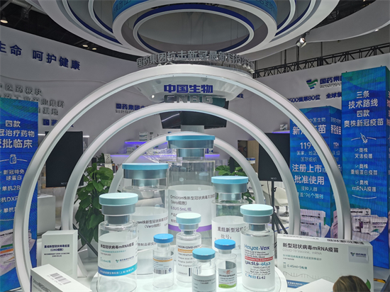 在2022年服贸会上,国药集团展示中国医药产品服务全球抗疫的成果;记者张帅摄