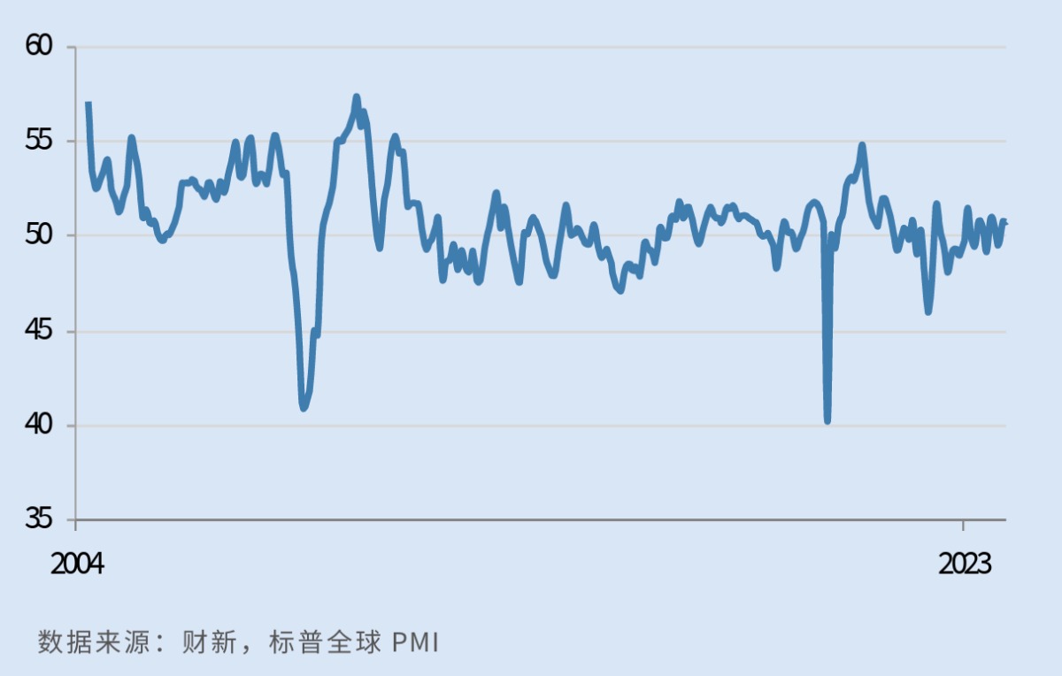 记者留意到,上月官方与财新制造业PMI走势存在分歧。国家统计局日前发布的2023年12月中国制造业PMI报49%,较前值回落0.4个百分点。当月,官方综合PMI产出指数仅较前值微落0.1个百分点至50.3%,仍延续扩张势头,预示中国经济总产出依然稳定。
