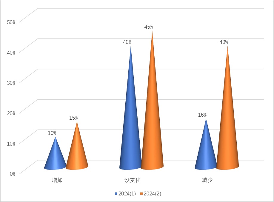 对于“过去一个月投资收益”的问题,表示“增加”的受访机构投资者占比从上期调研的22%降至本期的8%,认为“无变化”的机构占比从52%降至43%,坦言“减少”的机构占比从26%降至49%。在回答“未来半年投资收益将如何”的问题时,预期“将增加”的机构占比从36%降至24%,判断“或无变化”的机构占比从47%降至40%,认为“或将减少”的机构占比从17%升至36%。