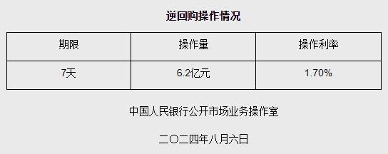 8月6日央行开展6.2亿元7天期逆回购操作