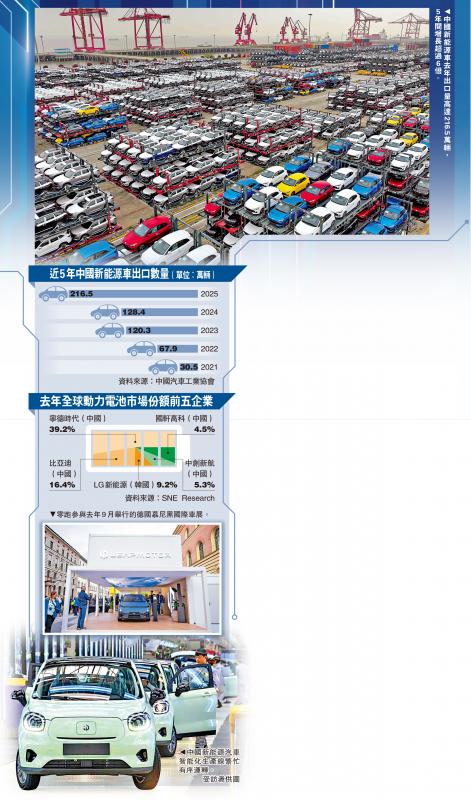今年是“十五五”开局之年,开放型经济迈上新台阶,中国外贸“含新量”、“含绿量”持续攀升。据国家海关总署数据显示,今年1至2月,“新三样”(锂电池、新能源车、光伏产品)的出口累计金额达到2337.2亿元人民币,同比增长50.7%。而随着中国科技跃升,新的“新三样”(人工智能、机器人、创新药)亦迅速冒起,为中国外贸出口增添动力。《大公报》推出“‘新三样’走向世界”专题系列,探讨各项产业在全球布局情况,以及未来发展方向。