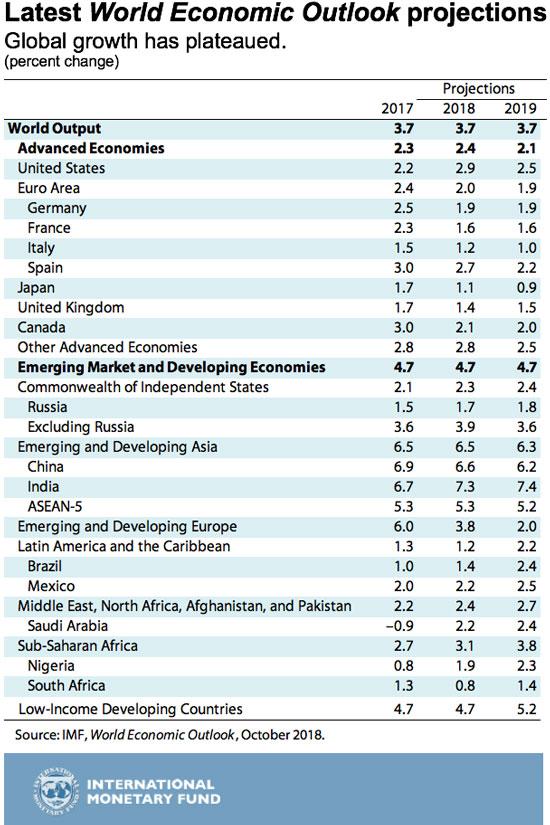 在周二发布的最新一期《世界经济展望》中,IMF将2018及2019年全球经济增速预期均由3.9%下调至3.7%。