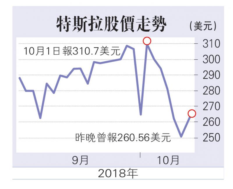 特斯拉与美国证券交易委员会就该公司行政总裁马斯克发出私有化贴文的指控达成和解协议后,特斯拉股价不升反跌,在周一收市时更大跌了4.3%,至十八个月以来最低水平。