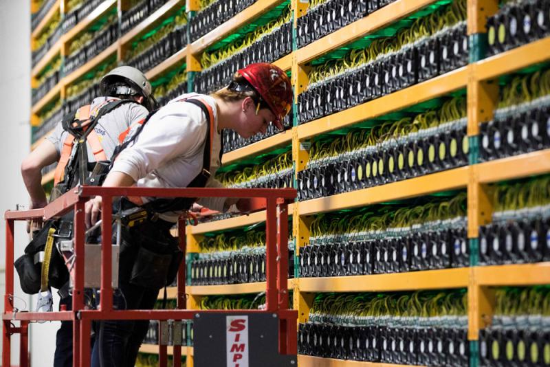挖掘虚拟货币需要使用特别器材,耗费大量电力,成本高昂;图为加拿大魁北克市比特币挖矿厂
