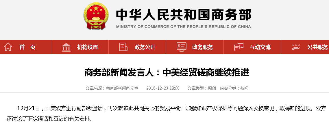 据商务部网站23日消息,12月21日,中美双方进行副部级通话,再次就彼此共同关心的贸易平衡、加强知识产权保护等问题深入交换意见,取得新的进展。双方还讨论了下次通话和互访的有关安排。