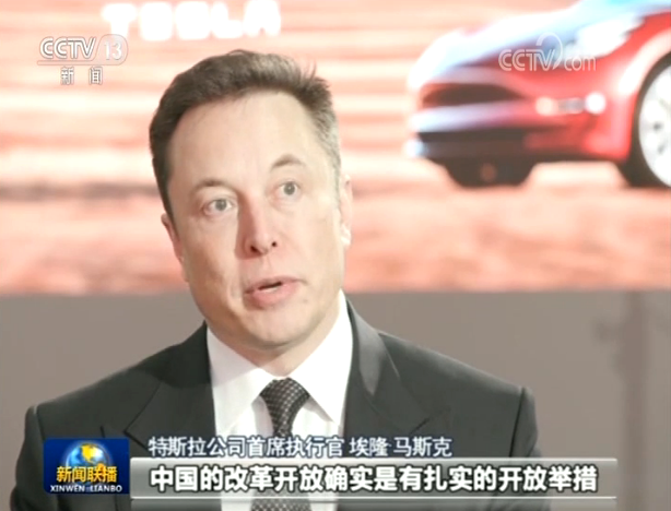 特斯拉公司首席执行官 埃隆·马斯克:中国的改革开放确实是有扎实的开放举措,长期来看我们对中国的未来很乐观,中国在朝着正确的方向发展,我们希望与中国的车企一起,帮助中国加速可持续发展进程。