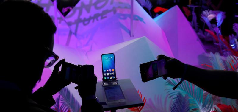 图:华为于5月21日在英国伦敦发布新款智能手机,吸引众多外国参观者关注和拍照\路透社