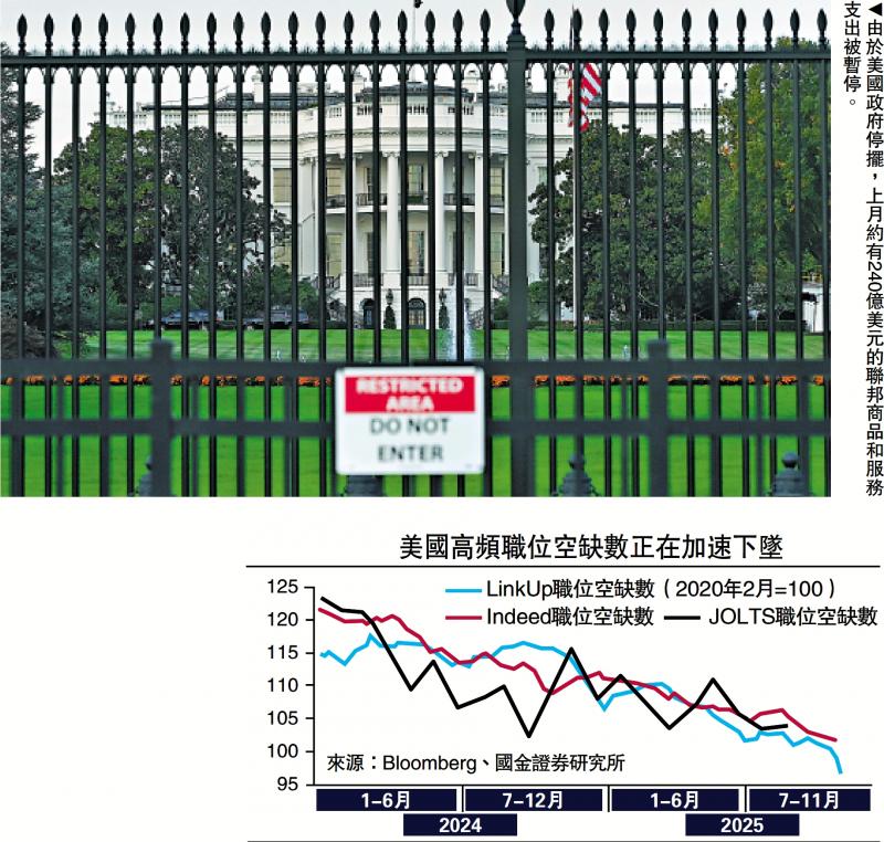 停摆对就业市场造成巨大压力。联邦政府雇员(不含邮政)共计约230万人,其中有75万人被强制无薪休假,另有多达一两百万政府承包商也处于没有收入的状态。对于机场调度员等无法关闭的关键岗位,员工必须无薪工作,处于“手停口停”的困境。这不仅严重打击他们的消费意愿和能力,甚至威胁到公共安全。例如,临近感恩节旅行高峰期,航空压力巨大,但空中交通指挥员无薪上班,已导致近期美国航空问题频频发生,引发广泛担忧。