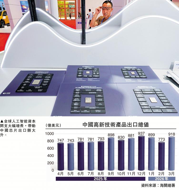 今年第一季度中国的出口增长理想,芯片出口的高增长有重要贡献;而中国芯片出口的高增长被普遍认为与当下人工智能(AI)在全球范围掀起一轮资本支出的高增长有关。