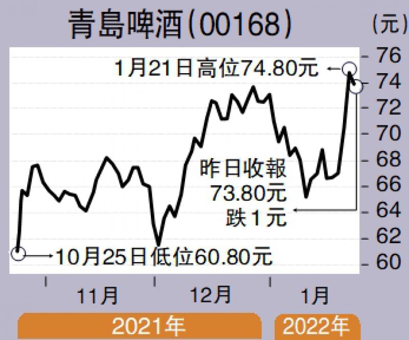 此外,北京冬奥开幕在即,青岛啤酒作为冬奥的官方赞助商,有利于其宣传高端产品以进一步打开销售管道。