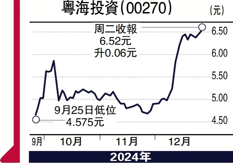 三、国家还鼓励国企股“变法”,将真正的实力和估值展现出来。所以,“保守”不再成为代词,而应是“积极有为”。国企很少运用“财技”,例如分拆、合并、重组、实物分流之类,相信新的一年会增加这方面的活动。试看粤海投资(00270)以实物分派粤海置地股份作特别中期息,就使整只股份由死气沉沉到生生猛猛,股价大涨二、三成,这一成功先例,肯定为国企股树立榜样。