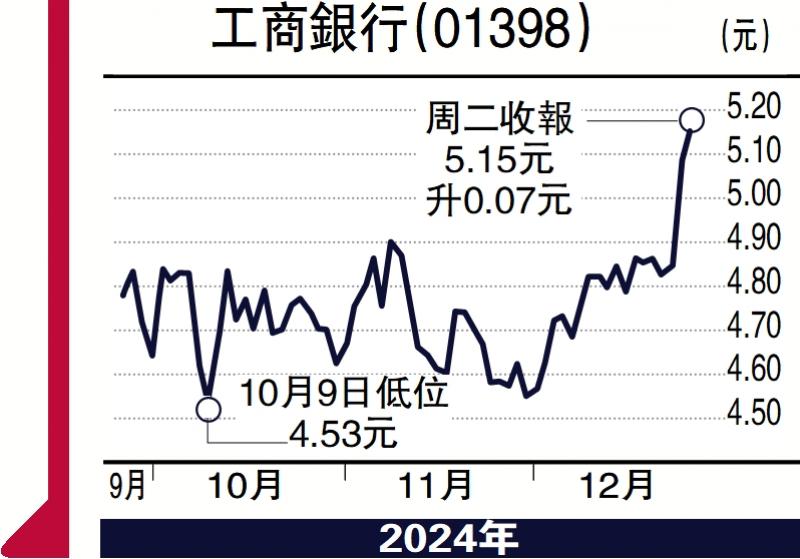 从技术走势分析,内银板块率先摆脱长期受制的投资文化,一旦扭转过去数十年的股价受人为因素影响,可望逐步以一个较合理10倍以上预期市盈率表现,回报具传统理念的长线投资。环顾多只内银股均已攀上近十年高位,工商银行(01398)日前突破5元心理关口,冲上5.19元,料会触发新一轮补购潮,随后即使出现技术调整,亦可沿10天移动平均线组织长线上升轨道,目前10天及50天线分别在4.89元及4.72元。而预期市盈率在7倍以下,上升潜力可强。