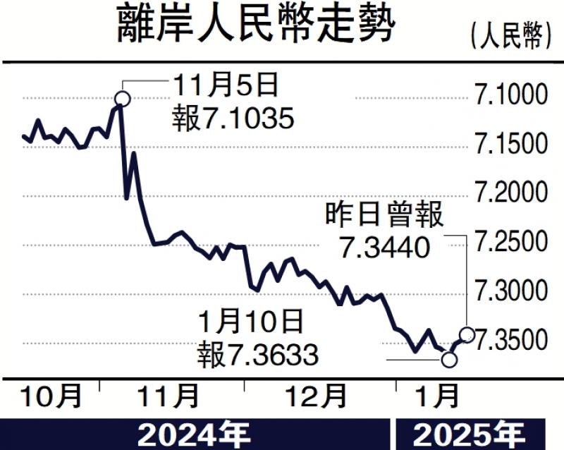 人民币在2025年开局走势并不理想,未有扭转去年年底开始出现的跌势,曾经尝试在7.3110站稳,然而未能成功后,反复被推低至7.3620附近。