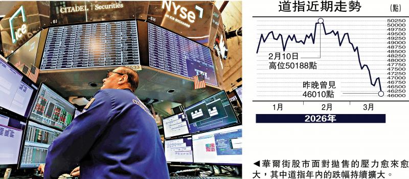 持续近一个月的中东战事未见平息,且有升级迹象,伊朗天然气设施受袭,即使战事结束,能源供应需时恢复,意味油气价格将长时间高企,全球面对高油价、高通胀威胁,忧心利率存在上升风险,其中澳洲央行已率先加息,环球资产价格受到市场流动性收紧的冲击,事实是美国股债资产价格年内由升转跌,一直依赖金融财富资产升值、支撑消费的美国经济,随着股债等资产财富减值效应浮现,经济将失速下滑。