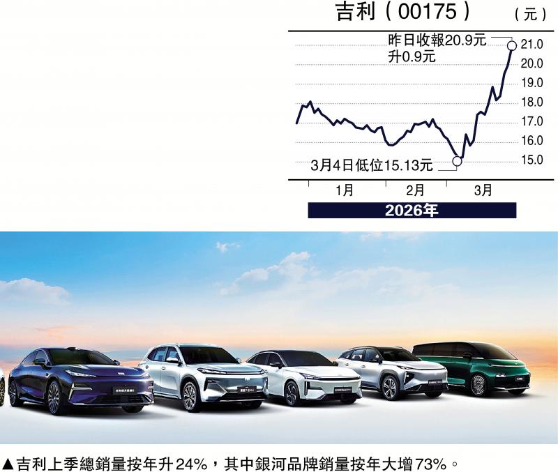 去年度,吉利营收3452亿元(人民币,下同),按年上升25%;归母淨利润144亿元,按年增长36%;每股盈利1.67元,末期息每股拟派0.5港元,较上年增加51.5%。