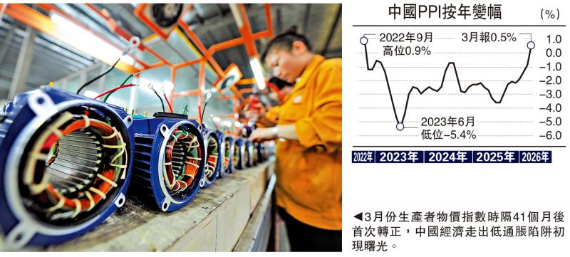3月份中国PPI(生产者物价指数)同比增长0.5%,时隔41个月后首次转正,中国经济走出低通胀陷阱初现曙光。探究背后成因,包含中东战局引爆原油价格、AI革命扩张资本开支、内房见底企稳等。但最为关键的是,只有有效增加居民收入,方能保证持续性的物价回升。