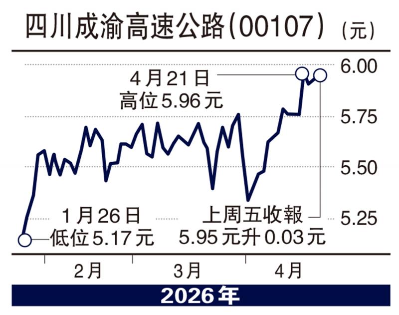 不过,证券界对四川成渝2026年的业绩展望有较正面期望,主要是3月份完成收购湖北荆宜高速公路的85%权益,即该项目可以在今年提供盈利贡献。荆宜高速于2024年度录得淨利润约1.92亿元。中金估计,荆宜公司今年有望提供2亿元的利润贡献。