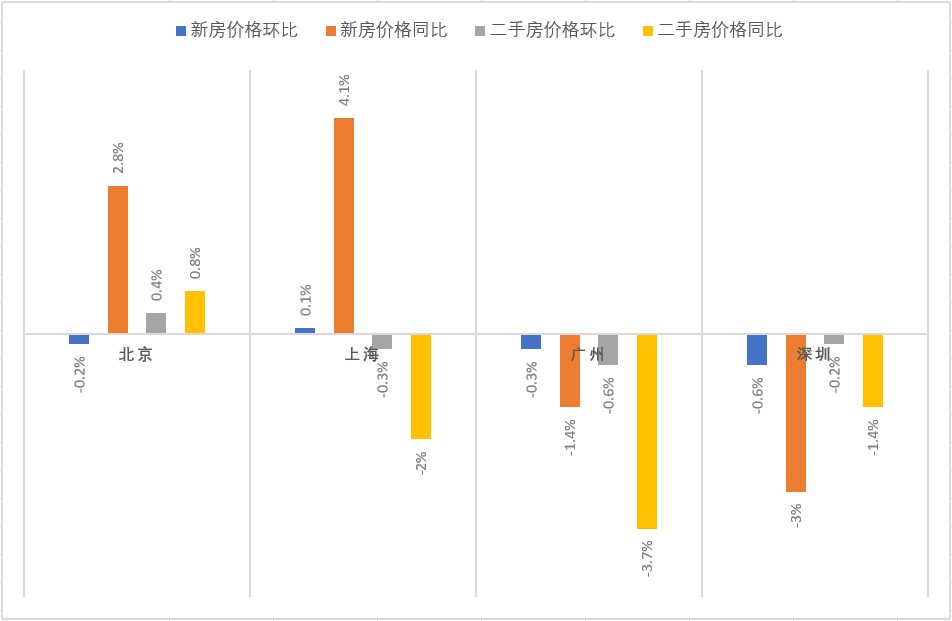 8月一线城市新房价格环比由7月的持平转为下降0.2%;二线城市新房价格环比下降0.2%,降幅与前值持平;三线城市新房价格环比下降0.4%,降幅较前值扩大0.1个百分点。同比看,8月一线城市新房价格上涨0.6%,涨幅较前值回落0.4个百分点;二线城市新房价格上涨0.3%,涨幅较前值扩大0.1个百分点;三线城市新房价格下降1.4%,降幅较前值收窄0.1个百分点。
