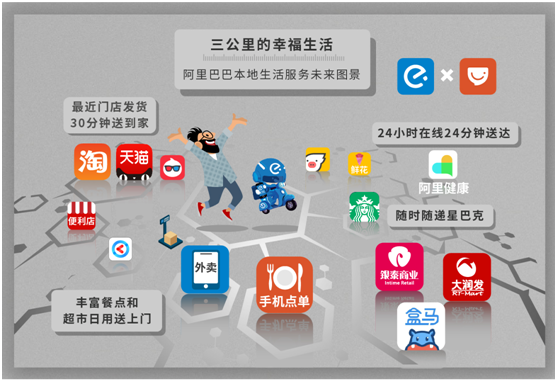 未来,本地生活服务公司将与阿里生态内原有各个板块产生更大的协同效应和化学反应。在新零售、会员体系、营销、物流、金融等领域,围绕城市生活,都将产生无限的想象空间——以每个人为中心,在3公里半径内,到店享受个性化服务,在家也有丰富餐点和超市日用送上门;在手机淘宝下单,最近门店发货,30分钟送到家;完备的社区医药服务24小时在线24分钟送达……最终,数字化的本地服务将延展到人们日常生活的方方面面,惠及8亿中国城镇居民。
