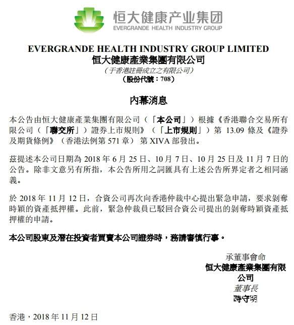 恒大健康公告