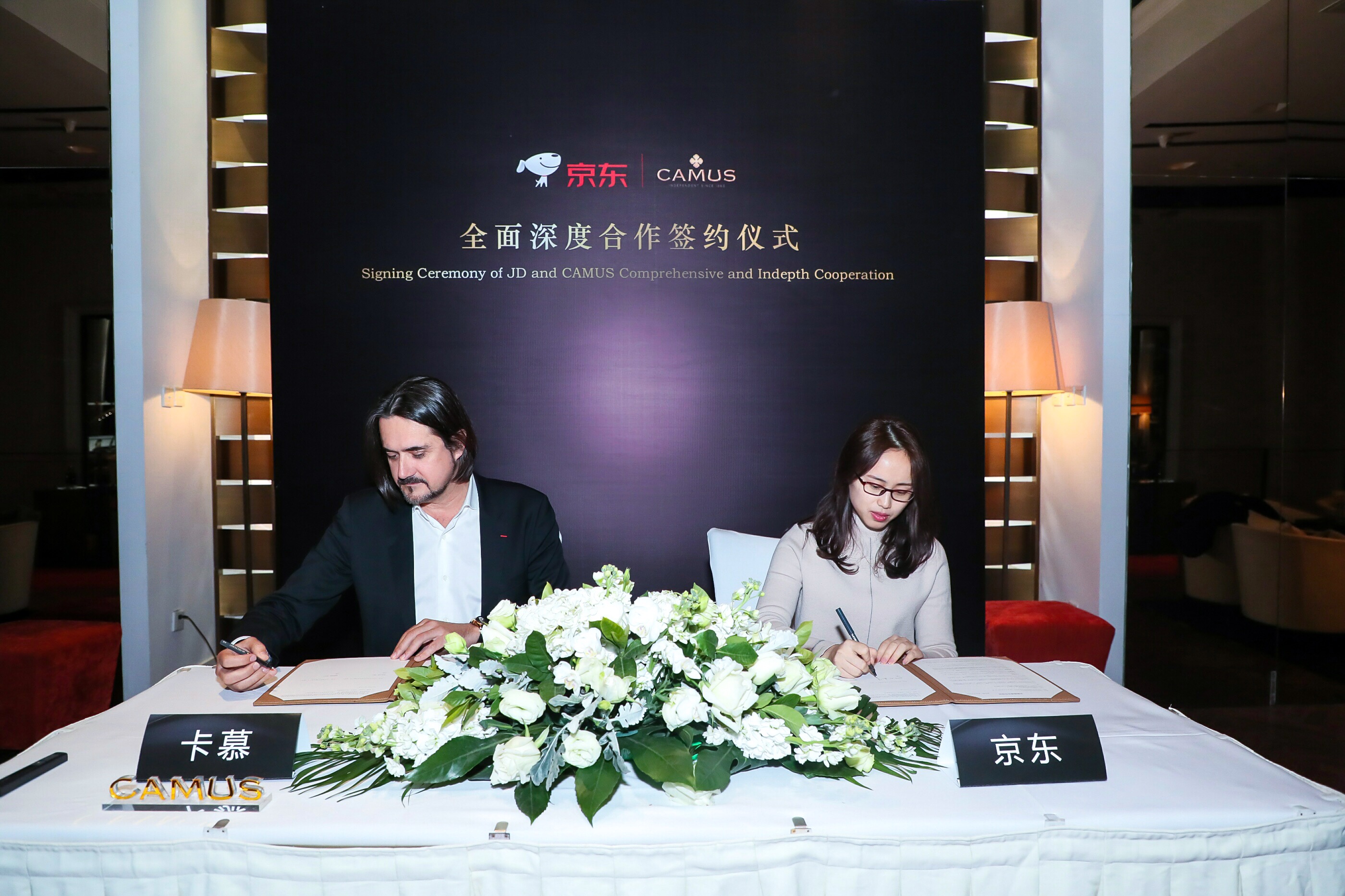 大公网1月7日讯 卡慕酒业集团总裁Cyril Camus 西里尔·卡慕与京东商城消费品事业部酒类采销部总经理吴双喜,今日(7日)于北京卡慕世家酒廊签订全面深度合作协议,双方表示期待携手共创洋酒行业的新发展,以深度合作为基础成就品牌双赢,为消费者提供美好生活新体验。