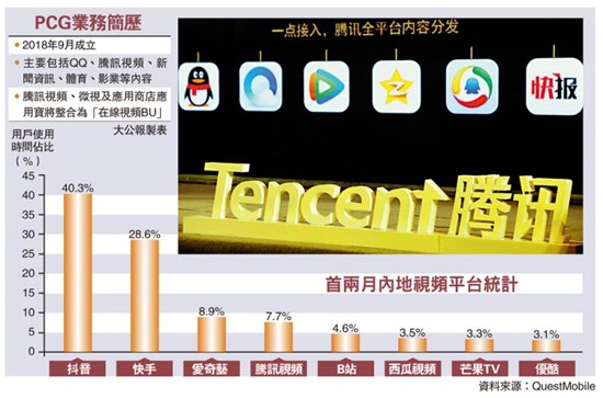 耀才证券研究部总监植耀辉认为,短视频产品的商业价值高,腾讯透过重整旗下平台与内容事业(PCG)架构,反映集团锐意加强视频市场的业务发展,借以抗衡竞争对手抖音和快手。