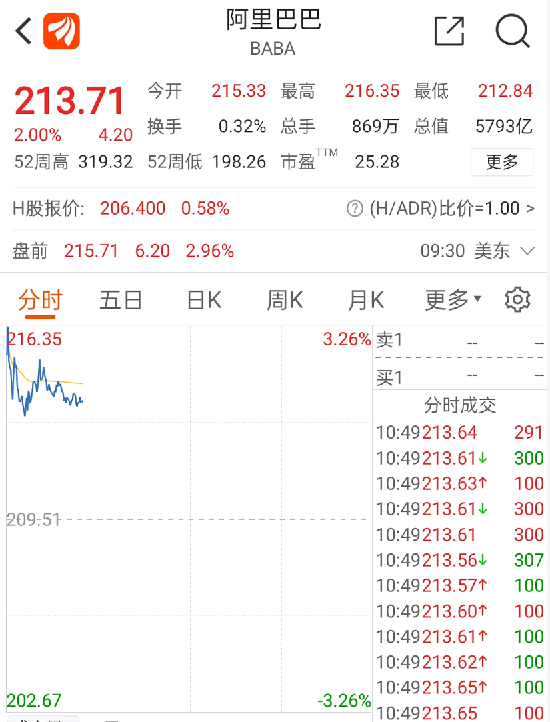 此消息一出,阿里巴巴美股盘前大涨超3%,开盘后稍有回落,截至发稿,涨幅回落至2%,腾讯控股ADR盘前一度大涨3.76%,而背靠腾讯的拼多多却“躺枪”了,盘中一度大跌超5%。