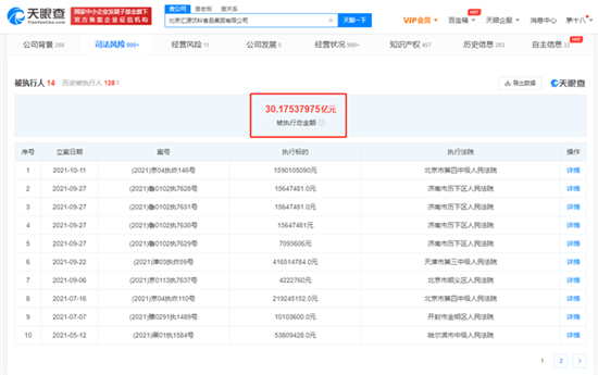 实际上,一代“国民饮料”汇源近来已经多次陷入被强制执行的窘境。今年9月,北京汇源饮料新增4次被执行总标的超5400万。截至目前,这家公司存在多条失信被执行人、限制消费令等信息,被执行总金额已经超过30亿元。