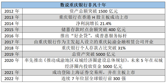 配表:数说重庆银行非凡十年