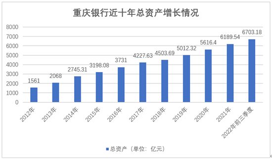 配表:重庆银行近十年总资产增长情况