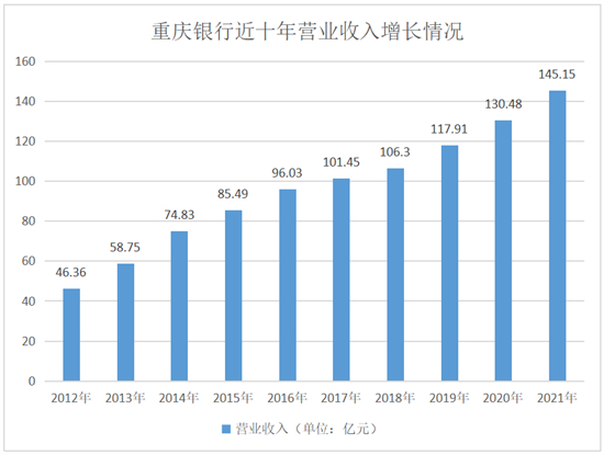 配表:重庆银行近十年营业收入增长情况