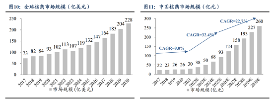这种产业链层面的全球纵深布局,为远大医药竞逐全球核药市场奠定了坚实的基础。后续随着全球核药市场的持续扩容,远大医药或将凭借先发优势及完整产业链布局,在这一蓝海市场占据重要席位。据Precedence Research数据,2023年,全球核药市场规模为107亿美元,并将以11.5%的年复合增长率增长至2030年的228亿美元。