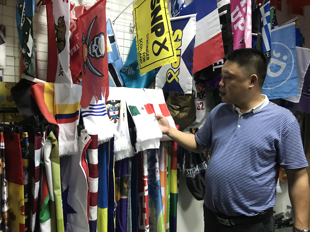 为了应对竞争,胡浩也在不断研发新产品,开拓新商机。“例如在国外,国旗上是可以印名字的,所以我们就会选择一些热门球员,把他们的名字印在国旗上,即使价格高一些,还有不少铁杆球迷会去买。”