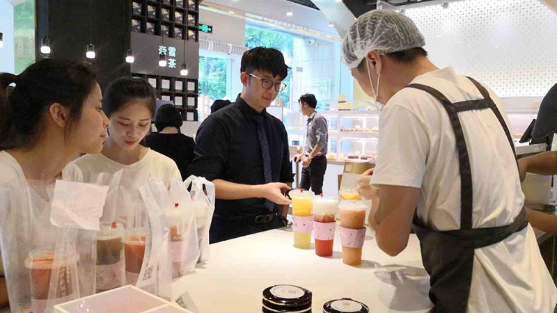 图:“如果你的男朋友真的爱你,就让他帮你去买奈雪。”奈雪的茶首家店开业不久,这句话忽然在社交平台上刷屏,门店经常大排长龙/记者熊君慧摄