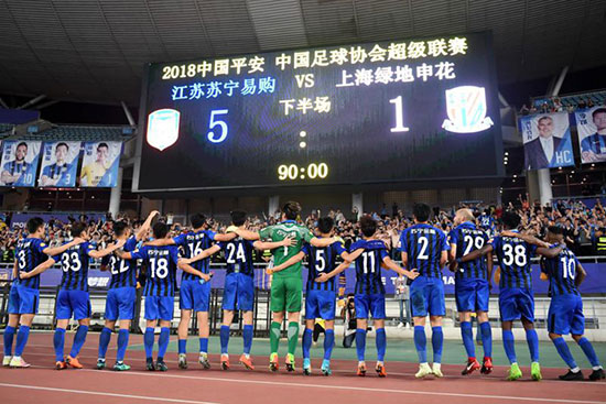 图:江苏苏宁易购与上海绿地申花球赛现场