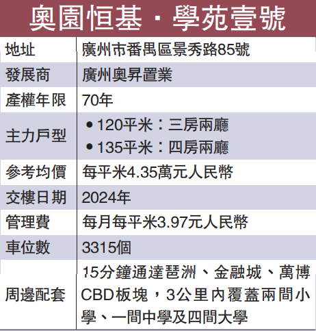 奥园恒基.学苑壹号布局及设计花心思,户型多元化,包括120平米三房两厅、135平米四房两厅,西南望江,私隐度高,更添安心。