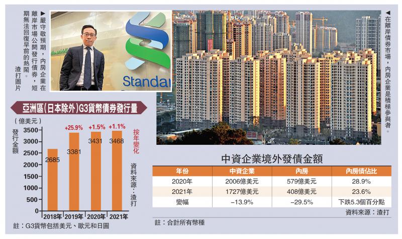 图:严守敬预期,内房企业在离岸市场公开发行债券,短期无法回复早前的热闹。\渣打图片