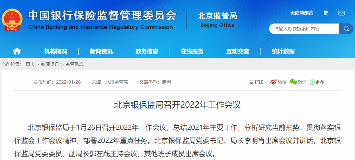 大公房产讯 近日,北京银保监局召开2022年工作会议。会议总结了2021年主要工作,分析研究当前形势,贯彻落实银保监会工作会议精神,部署了2022年重点任务。