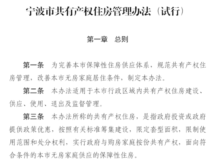 大公房产讯 2月7日,宁波市人民政府官网发布《宁波市共有产权住房管理办法(试行)》(下文简称《办法》)。《办法》将于2月26日起施行。