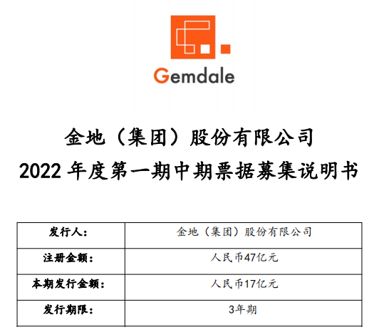 金地集团募集说明书显示,本期发行票据为2022年度第一期中期票据,发行金额为17亿元,发行期限为3年期,联合资信评估股份有限公司对其信用评级结果显示,主体评级为AAA,债项评级为AAA。金地集团表示,计划将本期中期票据募集的17亿元用于偿还到期债券与项目开发建设。