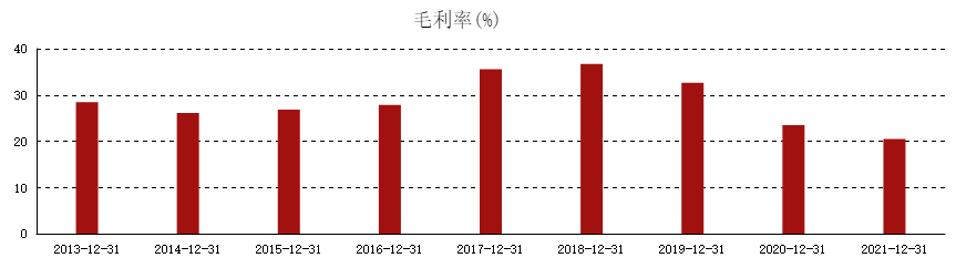 先是毛利率。从2018年到2021年,新城控股的毛利率从36.69%下降到32.64%,又从23.5%下降到20.45%,已经逐年下滑到了濒临跌破20%的处境。