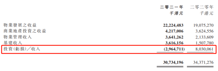 从行业角度来看,大幅下降的净利与毛利,在如今的房地产行业中已不足为奇。但从企业角度来看,投资业务录得亏损,更是合生2021年整体营收下滑的主要原因。