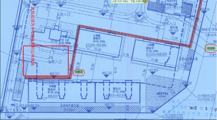 根据小区规划与宣传图,商业和住宅本应该有围墙隔开。但是王芳与其他住宅区业主在交房不久后注意到,规划图纸中住宅7号楼二单元-8号楼与商业的11号楼-12号楼之间、住宅的9号楼与商业10号楼之间并未设置通透式围墙。