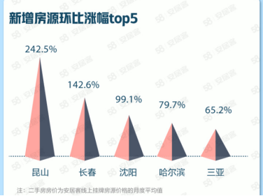 2022年5月,全国重点城市二手房新增挂牌房源量环比下跌6.3%,昆山、长春、沈阳、哈尔滨、三亚等城市新增挂牌房源量环比出现大幅回升。
